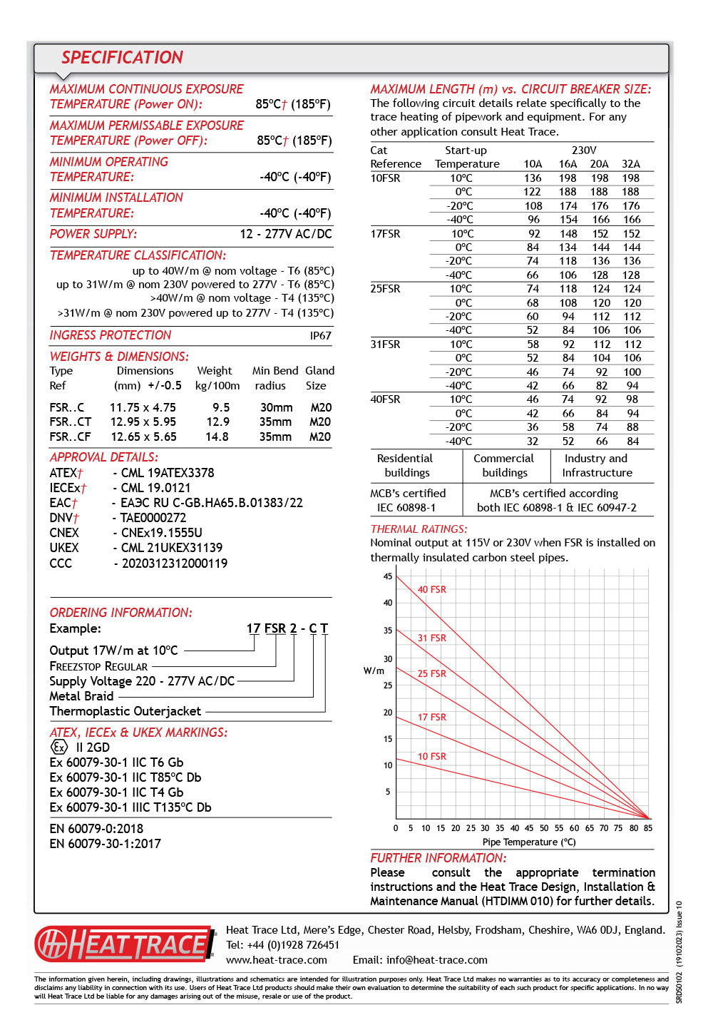 히팅케이블 온도범위 및 출력그래프